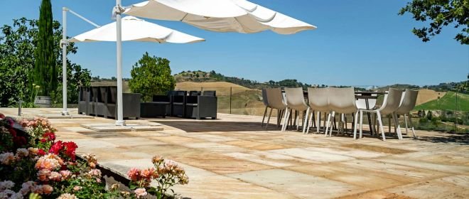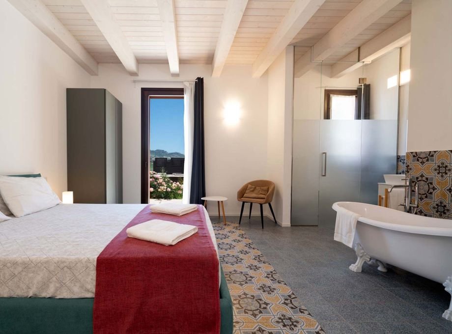 L’ampia terrazza, dove è presente una doccia esterna, è perfetta per fare un aperitivo godendo della splendida vista e ammirare il tramonto.