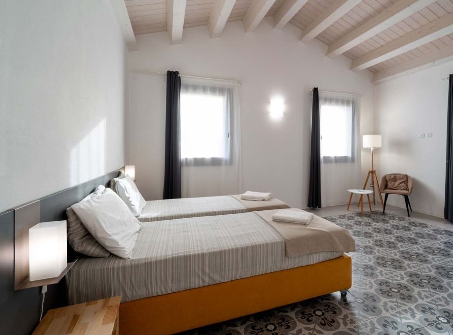 Due camere doppie con letti unibili e bagno privato con doccia e accesso alla terrazza.