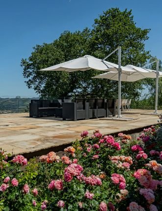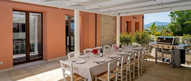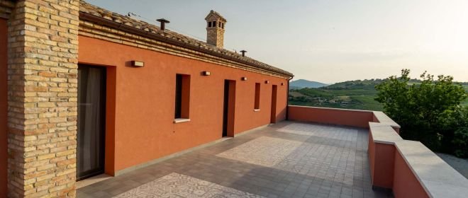L’ampia terrazza, dove è presente una doccia esterna, è perfetta per fare un aperitivo godendo della splendida vista e ammirare il tramonto.